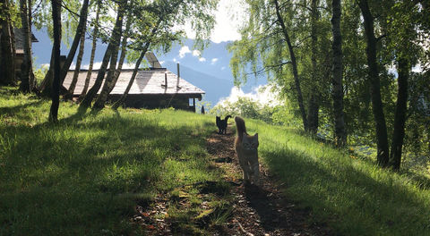 Die Alpe Soladino liegt auf 1140m in einem Seitental des Valle Maggia. Hier oben werden von Mai bis Oktober zahlreiche Tiere gesömmert. Einige von ihnen sind seltene ProSpecieRara-Rassen, auf deren Gefährdung wir aufmerksam machen möchten. Unsere pelzigen, fedrigen und borstigen Freunde dürfen sich frei bewegen und können sich so das beste Futter zusammensuchen. Den hier produzierten Ziegenkäse verkaufen wir den Wandervögeln und unseren Gästen. Die Alp wird von Auffahrt bis Mitte Oktober bewirtschaftet.