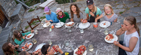 Zudem soll auch ein ganzheitliches Wahrnehmen der Kreisläufe der Natur und der Zusammenhänge von Tierhaltung und Konsum aufgenommen werden, so dass Teilnehmer*Innen von Klassenlagern oder Projektwochen mit einer geöffneten Perspektive zurück ins Tal und ihren Alltag schreiten können. Selbstverständlich ist auch die unmittelbare Naturerfahrung ein wichtiger Bestandteil, sei es beim Kochen mit Feuer, beim sich in anspruchsvollem Naturraum bewegen oder beim Arbeiten in der Natur und mit den Tieren.